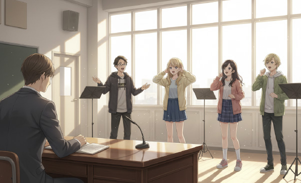 東京アニメーションカレッジ専門学校では、発声・滑舌・演技・表現など、現場で求められるスキルを幅広く学べます。